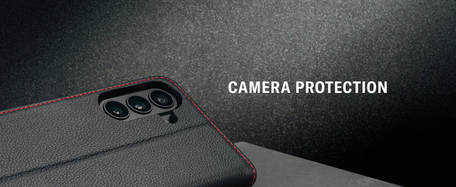 The S26 wallet case features a unique raised edge around the perimeter of the camera, to maximise protection against damage or scratches to the camera lens.
