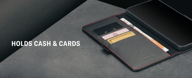 - Integrated stand function and storage for up to 3 cards & notes.